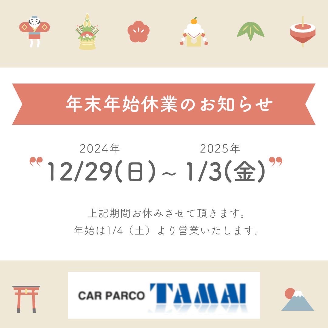 年末年始の休業は12/29(日)~1/3(金)です。